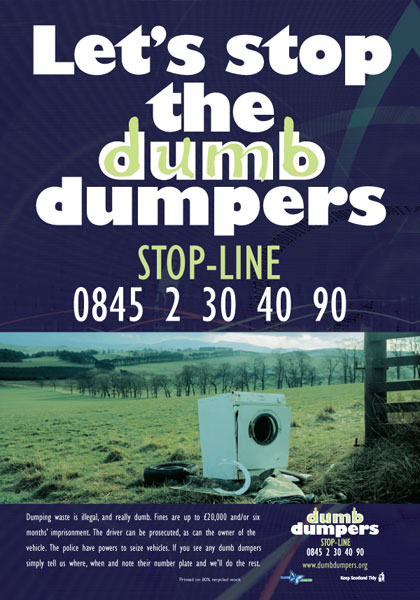 This campaign used the voice of One Foot in the Grave’s Victor Meldrew, aka actor Richard Wilson, to highlight the dumb behaviour of those that fly-tipped and to encourage people to report incidents to the new national 24/7 hotline that was manned by SEPA.