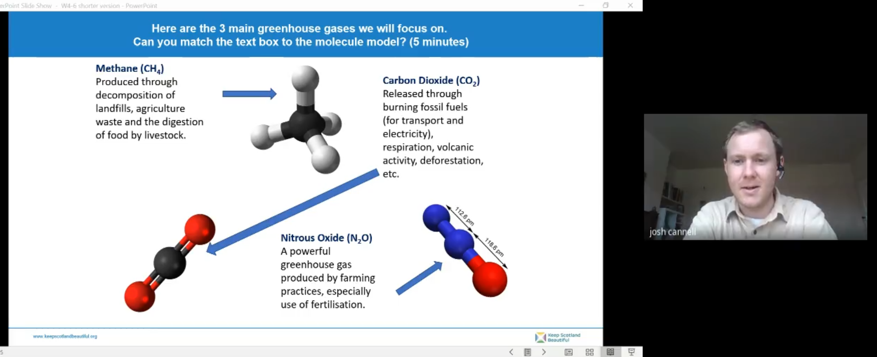 Over six weeks at the end of 2020 we welcomed Josh into our classroom once a week, via Glow! The Keep Scotland Beautiful delivery was different to how I would normally teach the topic, so as the students worked through activities with Josh, it was like ongoing professional development for me. The students looked forward to their weekly sessions, it helped break up the teaching week, and it allowed students who were self-isolating or unable to attend class, to join-in via Glow. The weekly Kahoot quizzes provided to be very popular with the competitive S6 members of the class!