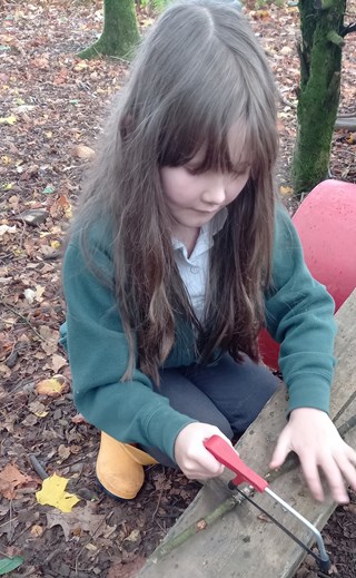 To improve play-based child initiated learning we created a "Wild Workshop" in the forest where children could create their own inventions from fallen branches, twigs and recycled offcuts. We increased the number of resources such as additional rope, scaffolding planks and tyres. We also defined an area of the forest as a "green gallery" where children could design their own temporary pictures using natural materials.