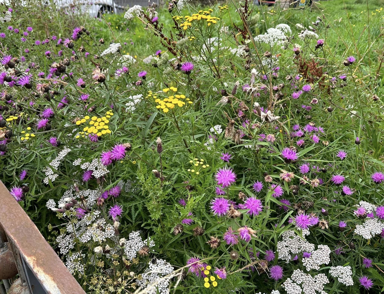 No pesticides are used in the Earlston project, and they have persuaded the council grass-cutting team to draw back from areas with red campion, yarrow, field geranium, purple vetch, cow parsley, and knapweed. To bolster pollinator’s chances, they have also encouraged long vegetation to potentially accommodate bumble bee nests, seeds for foraging birds, and next year’s flowers.
