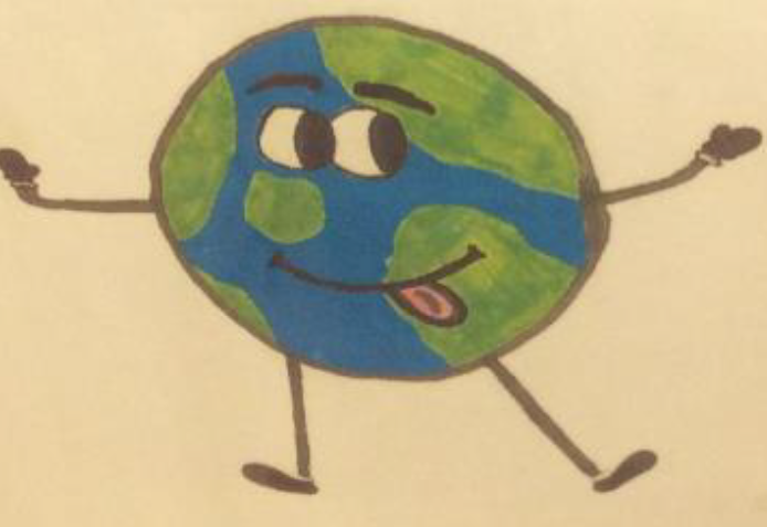 Meet Earth Boy Bishopton Primary School's Eco Mascot. He is displayed throughout the school including on recycle bins.