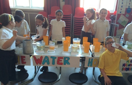 Some classes left taps trickling to measure how much water was wasted and to see how this could mount up during a day. During Water Week pupils held a Water Bar to encourage pupils to drink more water as part of a healthy diet. Flavoured water was created by using herbs and fruit slices. They also made good links to Waste projects by looking at the life of a plastic water bottle highlighting waste and reusing products. Pupils realised how easy it can be to waste water and how many of us take clean water for granted. They learned that only a tiny percentage of the Earth’s water is driving water and that we should really treat it preciously as all life depends on it.