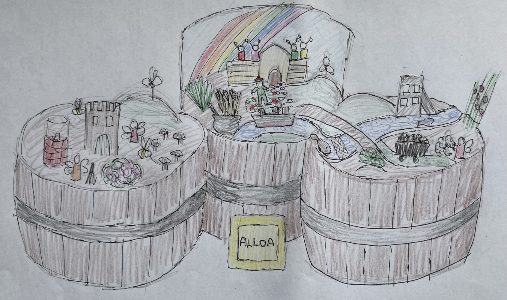 Our fairytale beavers are made from wool – a nod to Paton’s mill which produced yarn in Alloa for many years. Our favourite part of creating our garden was learning about how the reintroduction of beavers has begun to change our local landscape.