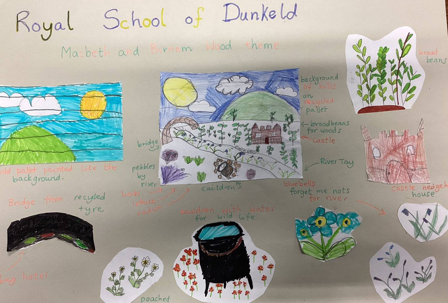 Our garden represents our link to Shakespeare’s Macbeth and our position at the foot of Birnam Hill and Birnam Wood.