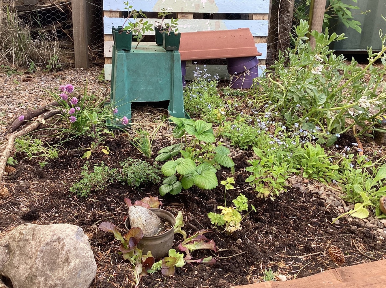 Parents donated plants and plant pots, and we had advice from mentors and from the lovely people at Little Trochry Farm. We haven’t decided what we will do with the garden after the competition, but we have spoken about relocating it or repositioning the plants in our main garden – hopefully away from the rabbits!
