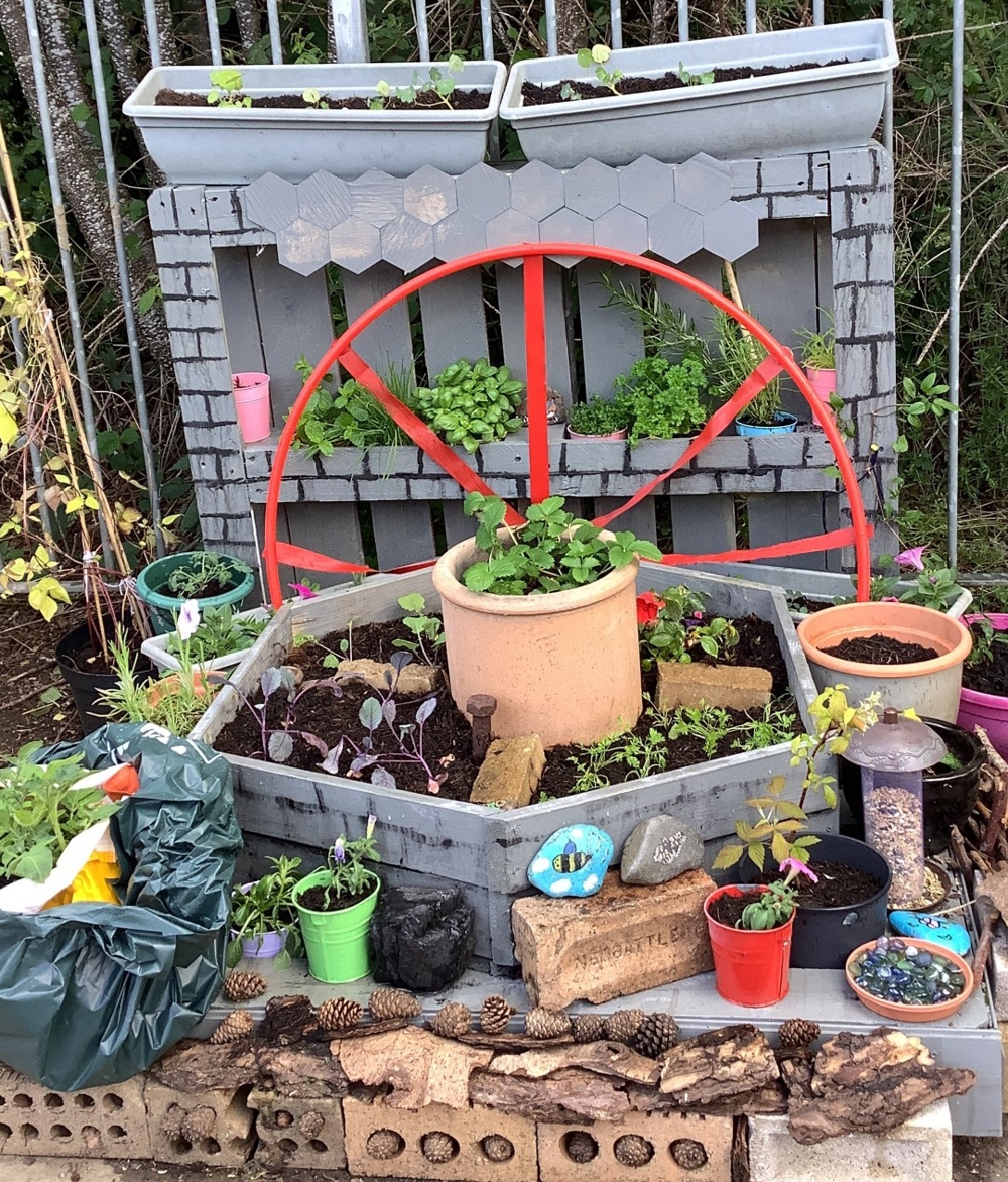 Pupils were particularly fond of the chimney pot planter that they saw at the mining museum. We were delighted when a parent was able to locate one for us from a local roofing company. We placed the chimney pot in the centre of the garden as a symbol of our coal mining heritage and filled it with strawberry plants.