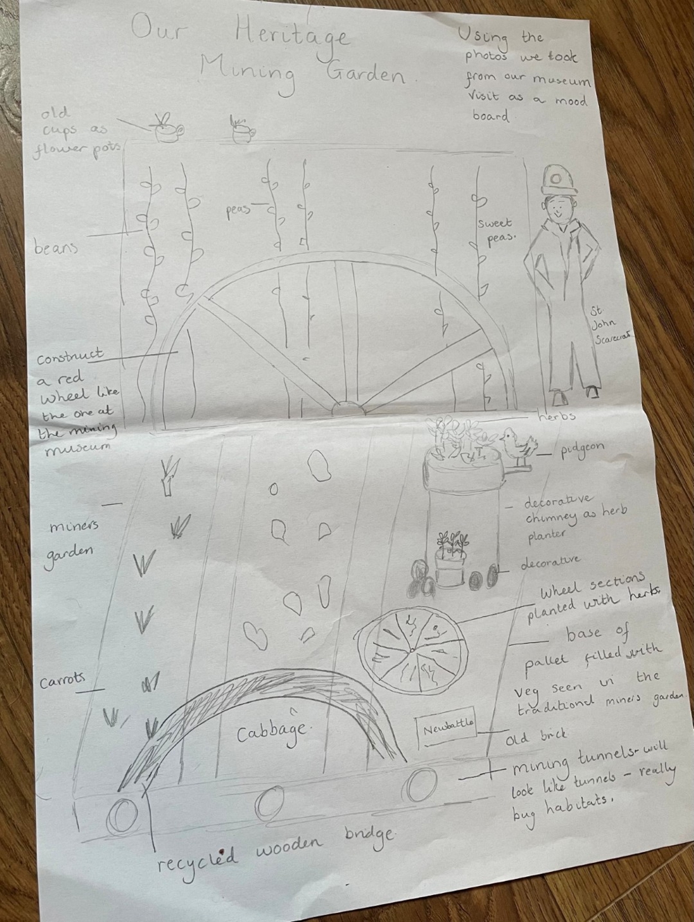 When we learned that the theme for this year’s pocket garden competition is heritage we immediately thought of coal mining. Mining was the main industry of our local area and its legacy is still here today. The Scottish Mining Museum less than a mile away from our school, and many of the houses built for the original miners are still in use. We arranged to visit the museum to gather ideas for our design.