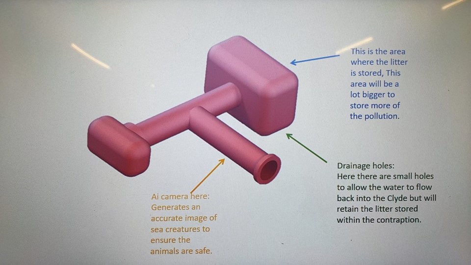 Cleaner of the Clyde includes a fine wire net, AI trained sensors, rotating device, rolling conveyor and drainage hole. The group plans to use tidal power to power it all, so it is not using unnecessary electricity and is capable of working 24/7.