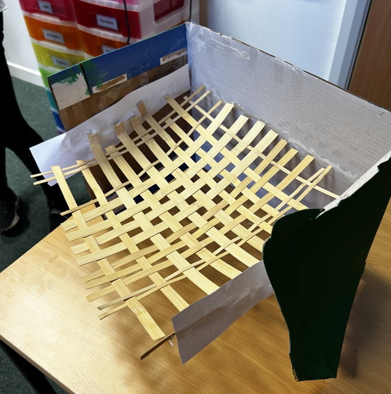 After investigating different materials, they decided bamboo would be a good material to use and set about working out a design. They watched YouTube videos and worked out how to weave the bamboo- this would become the sieve part of the design. The group worked very well by splitting into the design team and the poster team.