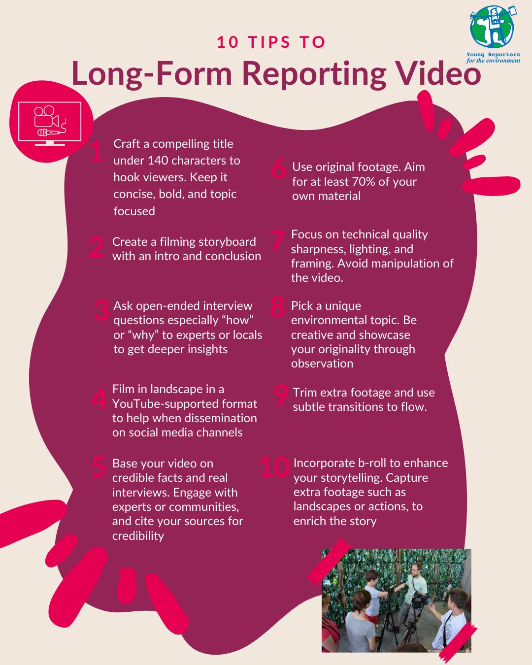 Ten tips from the Foundation for Environmental Education on how to record a good quality Video Report.